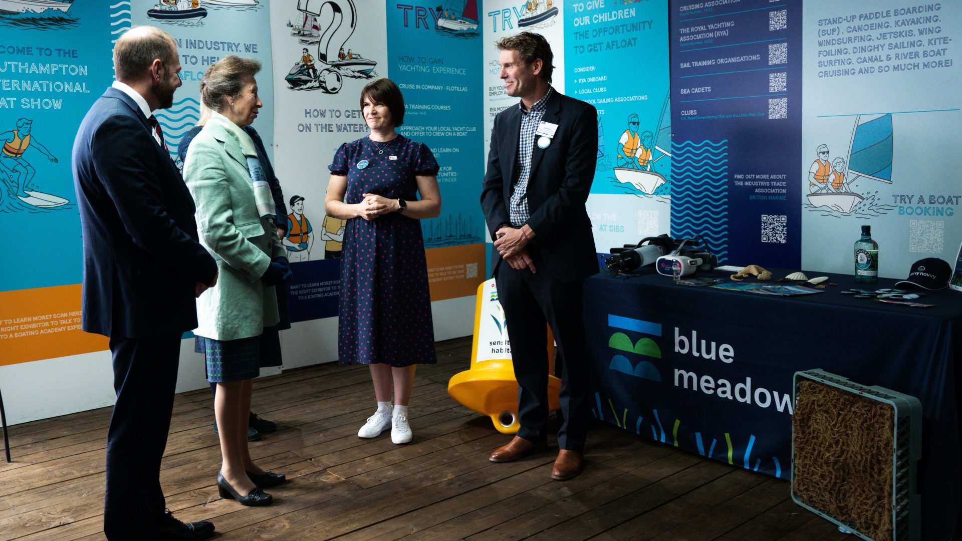 Many people have never seen seagrass in real life before, so we took a 200 litre seagrass exhibit with us, featuring living seagrass, so people could see it with their own eyes. It was a definite crowd pleaser, but we were particularly excited to have a very special guest come and take a look – Her Royal Highness the Princess Royal! After watching her talk at the British Marine Reception for RYA’s The Green Blue, we were inspired by her understanding of the degradation of the marine environment, and how the use and development of sustainable materials is so important. It was great to have the chance to talk to her more about sustainably using the Ocean so both nature and people can thrive together.