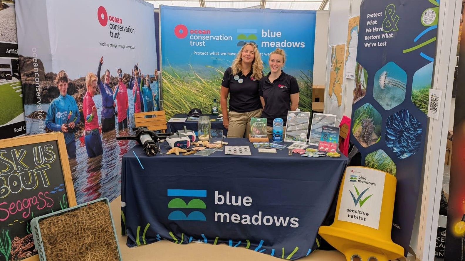 Our interactive stand allowed visitors to engage with every aspect of our seagrass conservation work, from finding out how we are protecting and allowing seagrass to regenerate, to learning more about our innovative seagrass restoration techniques. Throughout the week we delivered talks on the Boating Academy Stage, and also did mermaid shows to engage the younger attendees of the show with captivating stories! We had Ocean artefacts that visitors could handle for a tactile experience, as well as virtual reality headsets to immerse people in the wonders of seagrass meadows.