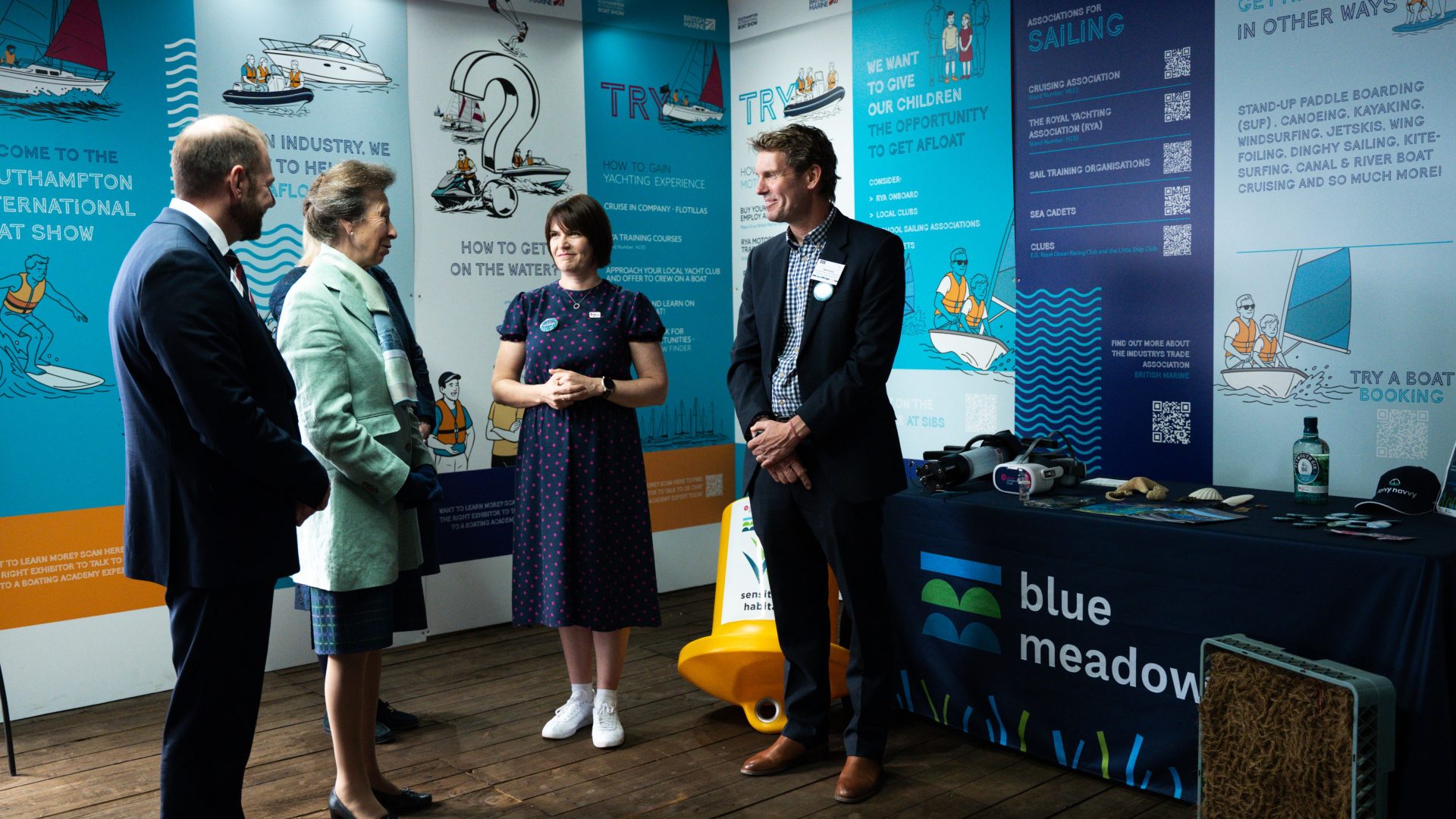 Many people have never seen seagrass in real life before, so we took a 200 litre seagrass exhibit with us, featuring living seagrass, so people could see it with their own eyes. It was a definite crowd pleaser, but we were particularly excited to have a very special guest come and take a look – Her Royal Highness the Princess Royal! After watching her talk at the British Marine Reception for RYA’s The Green Blue, we were inspired by her understanding of the degradation of the marine environment, and how the use and development of sustainable materials is so important. It was great to have the chance to talk to her more about sustainably using the Ocean so both nature and people can thrive together.