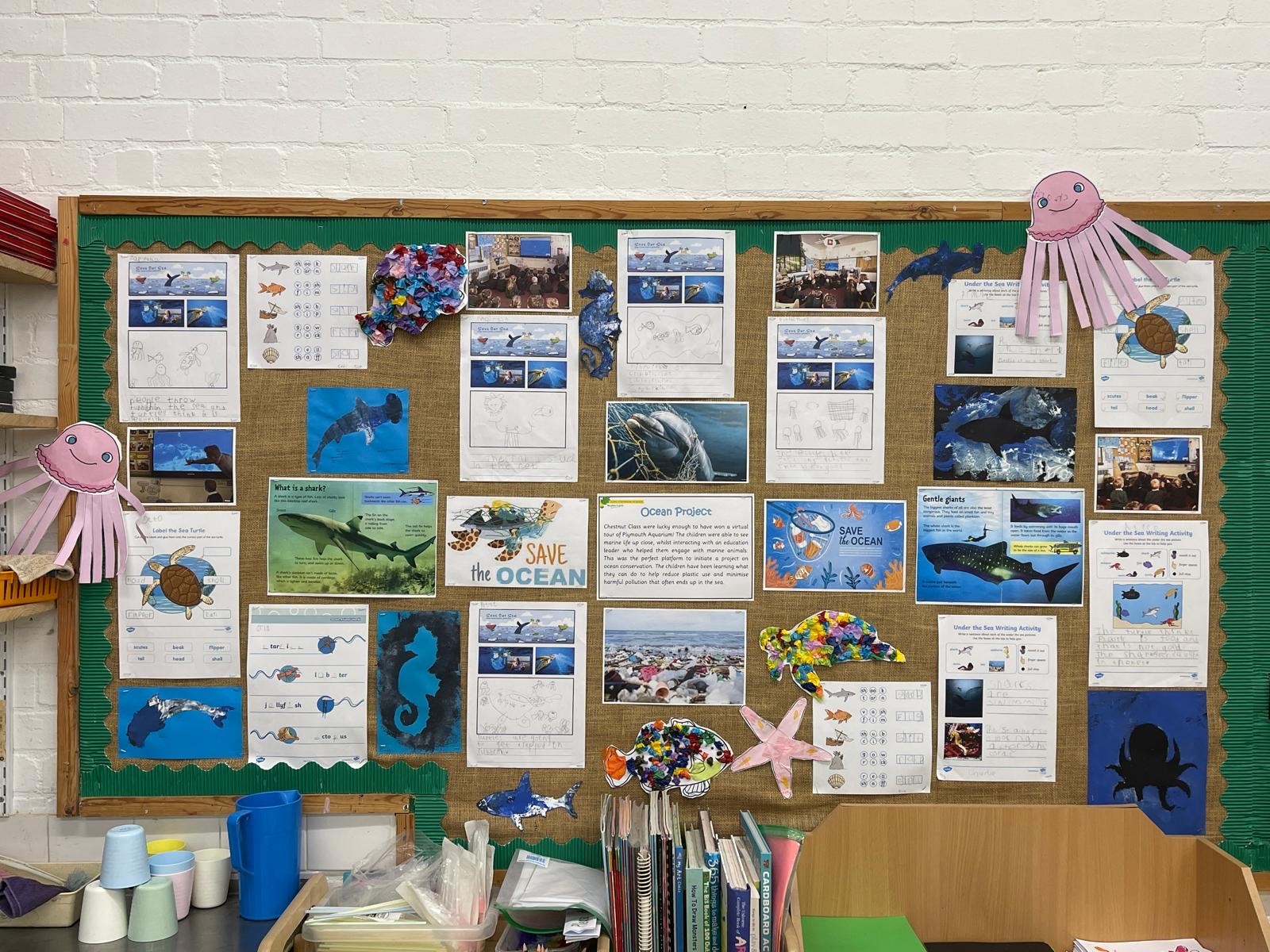 Inspired by what they had learned, the class went on to create a beautiful wall display filled with Ocean-themed artwork. The display features vibrant drawings, painted seascapes, and creative interpretations of marine life, all proudly showcasing their new knowledge and excitement. It has transformed their classroom into a mini underwater gallery – a daily reminder of their virtual journey beneath the waves. Poote said there was a huge educational value in the experience.
